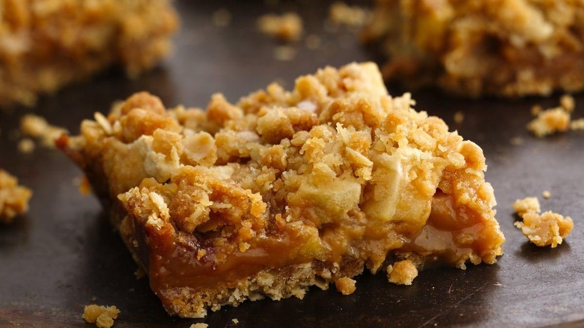 Réserver 1 1/2 tasse (375 mL) de la préparation. Presser le reste de la préparation dans le fond du moule. Faire cuire 15 minutes. Étaler les pommes uniformément sur la croûte.