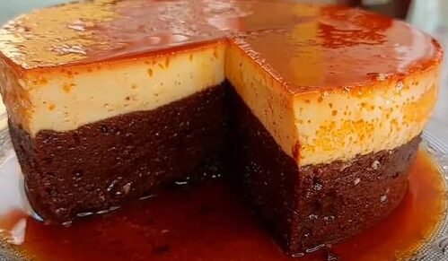 CHOCOFLAN OU CAKE IMPOSSIBLE Ingrédients Pour le gâteau : 180 g de farine de blé tendre tout usage 160 ml de lait entier 120 ml d’huile d’olive légère 2 œufs …
