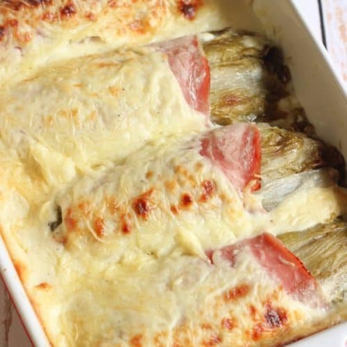 Endives au jambon faciles à la béchamel INGREDIENTS 4endives 4tranches Jambon blanc 140g Gruyère râpé 75cl Lait entier 50g Beurre 50g Farine 1cuil. à soupe Crème épaisse Sel Poivre Étapes de préparation Coupez les pieds des …