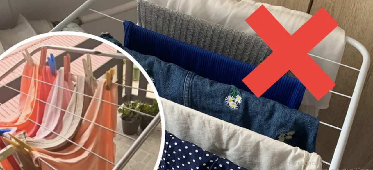 Cette astuce vise à vous montrer comment changer de perspective peut faciliter votre travail. Vous suspendez généralement votre linge horizontalement sur les paniers du sèche-linge, ce qui prend beaucoup de place.