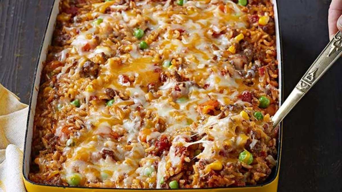 Gratin mexicain à base de riz et de bœuf haché.
