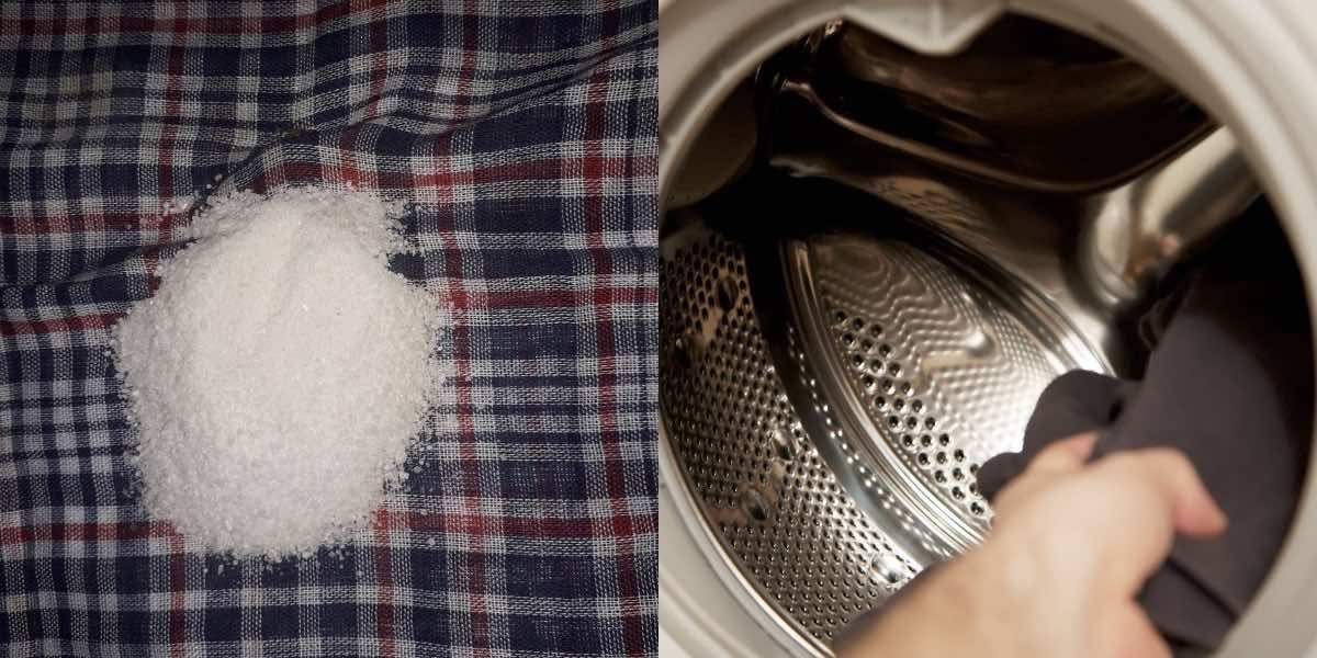 Pour un lavage en machine à laver, vous n’avez besoin que d’une cuillère à soupe de sel, mais uniquement à gros grains, car le plus fin se dissout trop rapidement, et il est nécessaire de l’avoir dans le tambour non seulement pendant le lavage, mais aussi pendant le rinçage.